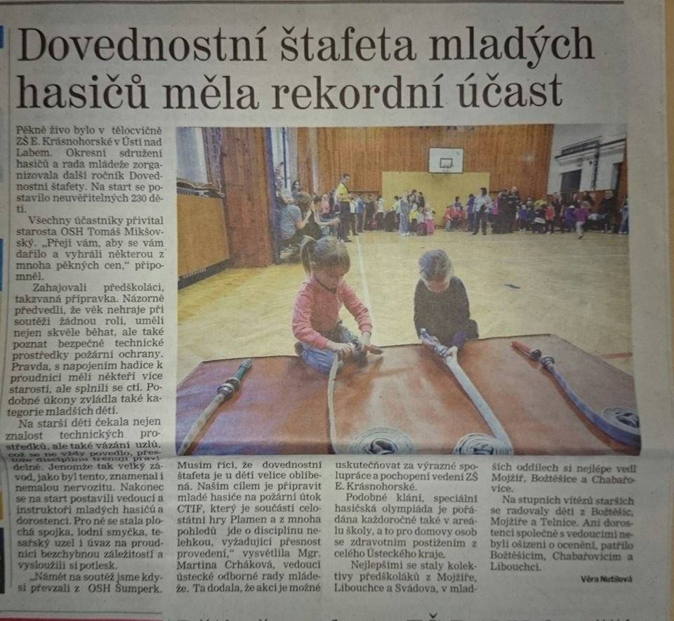 Dnes vyšel na stránkách Ústeckého deníkku článek o SDH